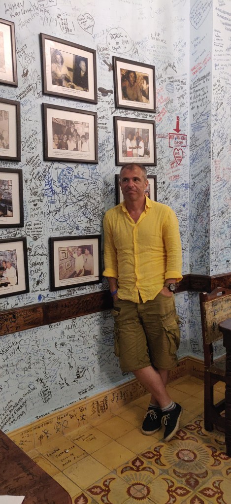 Revenind la Santa Clara, la recomandarea proprietarului pensiunii, m-am dus la restaurantul vedetă al orașului, La Bodeguita del Medio. Localul a avut de-a lungul timpului doar 3 tipuri de clienți: clienți care au lăsat un grafitti pe perete, restaurantul având literalmente toți pereții acoperiți cu mai multe straturi de grafitti, clienți suficient de celebri încât să primească un tablou pe perete cu o poză pe când vizitau localul (Gerard Depardieu, Claudia Cardinale, Ted Turner, Joe Fraiser, Harry Belafonte, Muhamad Ali, Rita Hayworth, etc etc) și clienți care nici n-au lăsat grafitti și nici de tablou nu au parte. Evident, nehotărârea mea m-a aruncat în a treia categorie, încă mai meditând dacă totuși un grafitti bine plasat nu m-ar fi scutit de un efort totuși disproporționat pentru a deveni celebru.