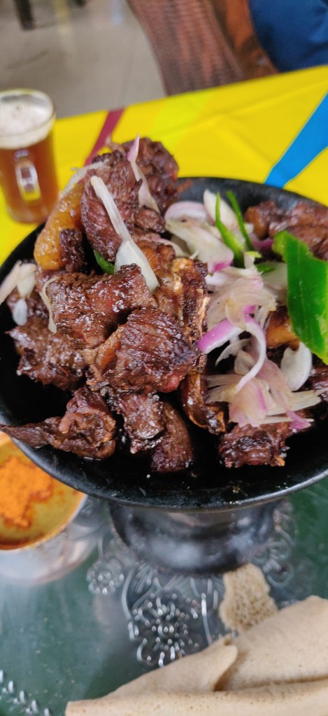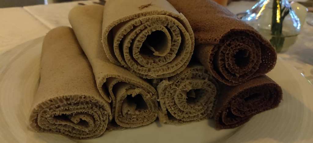 Și ca experiența să fie completă nu am ratat “ingera”, pâinea locală ca un șorici de purcel, făcută din teff, o plantă asemănătoare meiului. În plus, am avut extraordinarul noroc ca în timpul vizitei la Debre Lebanos (mănăstirea de referință a etiopienilor), să întâlnesc în timpul prânzului, într-o locație remarcabilă, cateva dintre vedetele locale care turnau un clip pentru apropiatul An Nou. N-am sperat să am șansa să vizitez Bollywood-ul în vârf de munte etiopian, dar experiența a meritat cu vârf și îndesat. În plus, lăsându-i cablul charger-ului meu băiatului care opera drona de la filmări, sper că am pus umărul dacă nu la dezvoltarea industriei filmului etiopian, cel puțin la îmbogățirea programului de Revelion de peste 3 saptamani, astfel încât “Dacă doriți să revedeți…” să devină, măcar pentru o săptămână vedeta audiențelor televiziunii etiopiene.