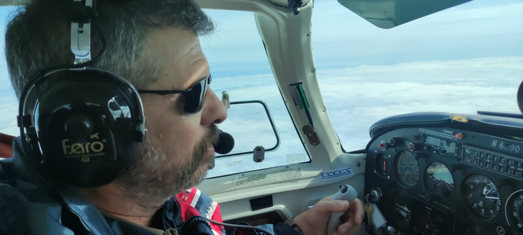Fast forward, după echiparea cu constumele de ștrumf (costume de izolare termică) și alimentarea avionului pe o ploaie crâncenă, care a reușit să ude până și bordul avionului în cele 47 de secunde în care am deschis ușa ca să ne introducem în cokpit (am mentionat că era vară în Iqualut, nu?) am purces la zbor. Groenlanda, here we come!