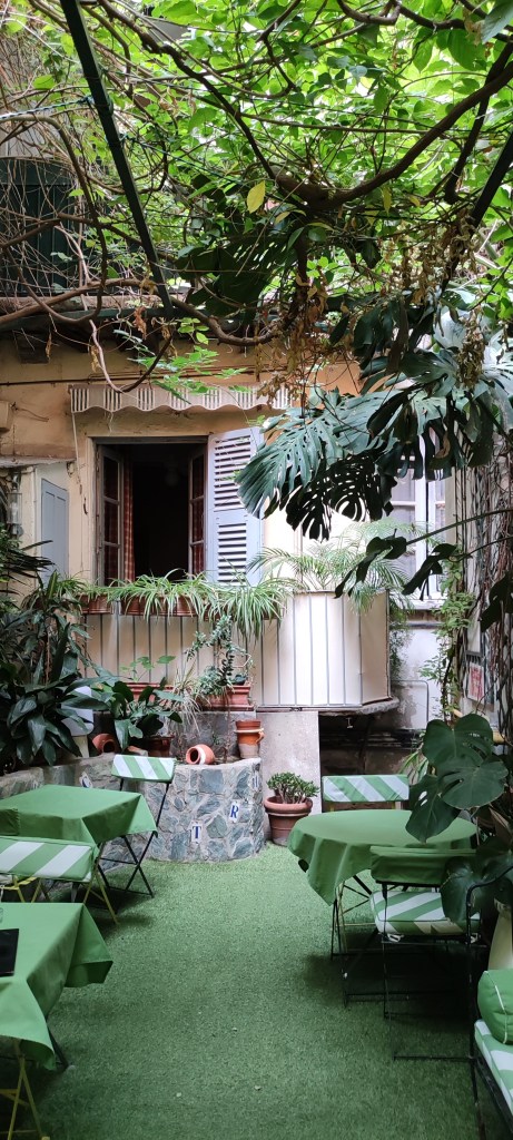 Ziua a început în forță, dis de dimineață la cafea, în charmanta gradină din spatele hotelului discutând despre care e cel mai indicat traseu de urmat: Prin Pula/Croația sau prin Belgrad/Serbia. Și ca discuția să ne priască, am vrut să luăm și micul dejun, aparent o cerere rezonabilă, mai ales că era deja 7 diminieața și nu mai era nimeni pe terasă.