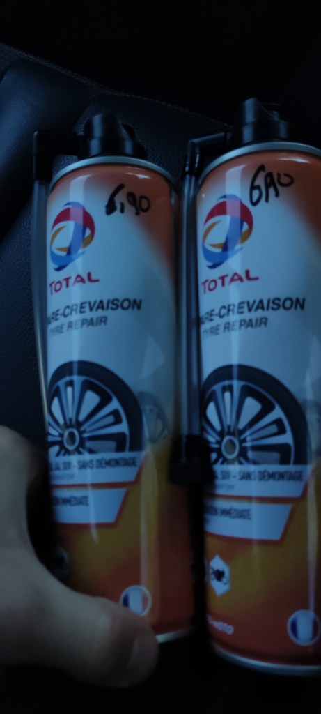 Zis și făcut. În timp ce Radu a rămas să îți facă de lucru cu compresorul, eu am ieșit pe o poartă laterală (pe unde aveam să și reintru mai târziu, sărind peste tot circul cu poliția, vama etc) și am ținut-o glonț către biroul FBO-ului. Acolo domnișoara de mai devreme, cu același accent sexy, mi-a făcut legătura pe telefon cu colegul ei, care m-a anunțat că nu au cum să ne ajute. Inclusiv insistența mea cu priviere la ”dar ce faceți aici dacă un Airbus are o pană de cauciuc?” n-a dus nicăieri. ”Désolé” a fost maximum din ce am putut să scot. Așa că am trecut rapid la planul B reușind sa sar într-un taxi și să cumpăr de la o benzinărie ”crevasse repellent”. Adică substanță pe care o injectezi în cameră ca să astupe gaura …până un alta. Niciodată nu mi s-a parut o benzinărie mai utilă ca în momentul ăsta.