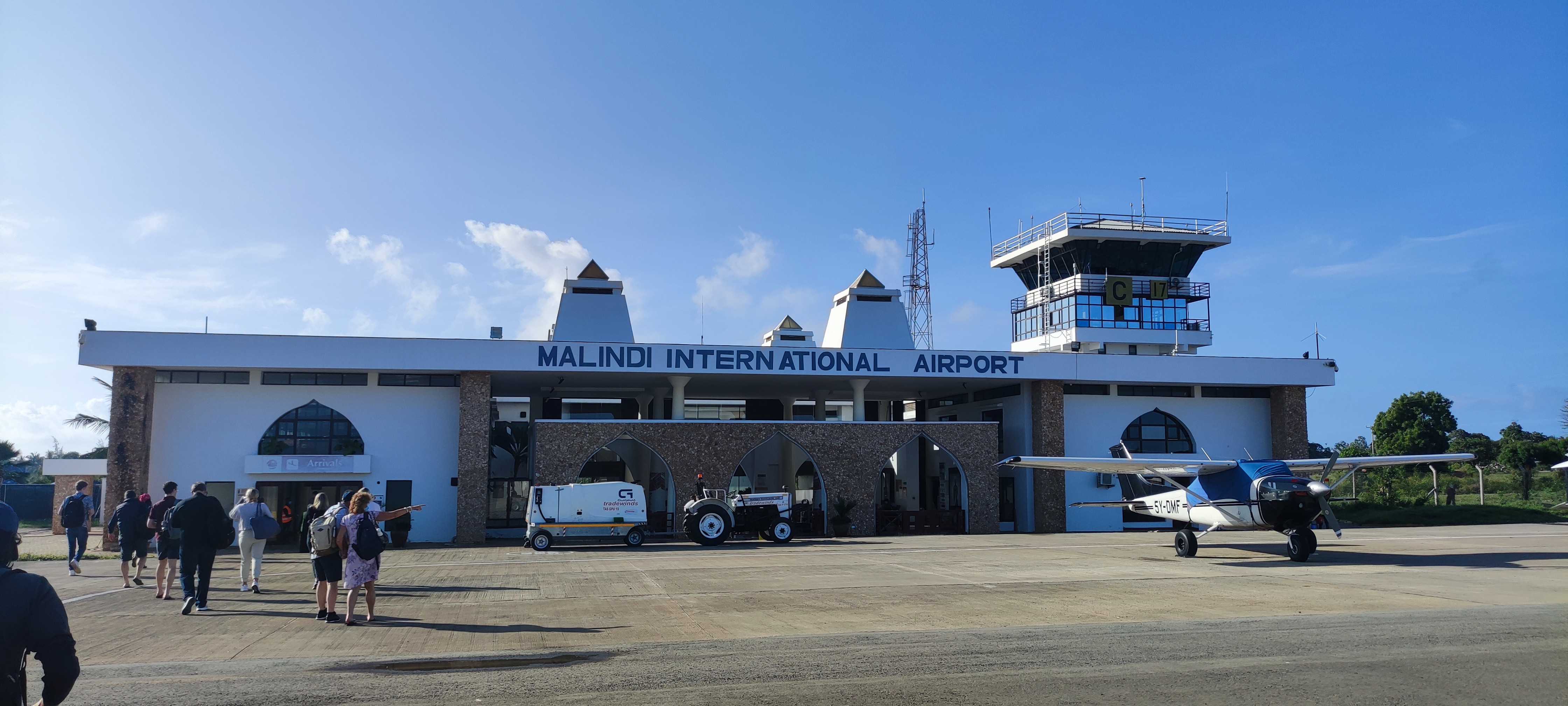 Ca să ajungi la Mombasa ai 3 posibilități : 1. Trenul, pe principala cale ferată a Kenyei Nairobi – Mombasa, neelectrificată, constrută și întreținută de chinezi și plătită de kenyeni. 12h pe timp de noapte și se pare că în condiții OK (cușetă etc) 2. Mașina, 450 km făcuți în cam 10-11h (cum ai noroc de trafic) și 3. Avionul – 1h de zbor. Am optat pentru varianta 3, zburând din aeroportul Wilson (un fel de Baneasa al Nairobi-ului) direct la Malindi, în fapt destinația mea, aflată cam la 120km nord de Mombasa, acesta fiind încă un motiv să zic pass ”Orient Express-ului” African. Ambele aeroporturi, Wilson și Malindi, au niște piste foarte șarmante, fie cu găuri în ele, fie cu plombe de asfalt – nenivelate – turnate peste găurile vechi. Și așa cum se spune că avioanele de luptă rusești sunt cele mai pregatite de razboi, întrucăt pot decola de pe orice fel de suprafață fără ca aceasta sa fie curată sau nivelată (unde gasești așa ceva în război?) așa se pare că și piloții kenyeni sunt gata în cazul unui conflict să-și apere țara având suficient antrenament pe pistele, ca după război, ale aeroporturilor civile kenyene.