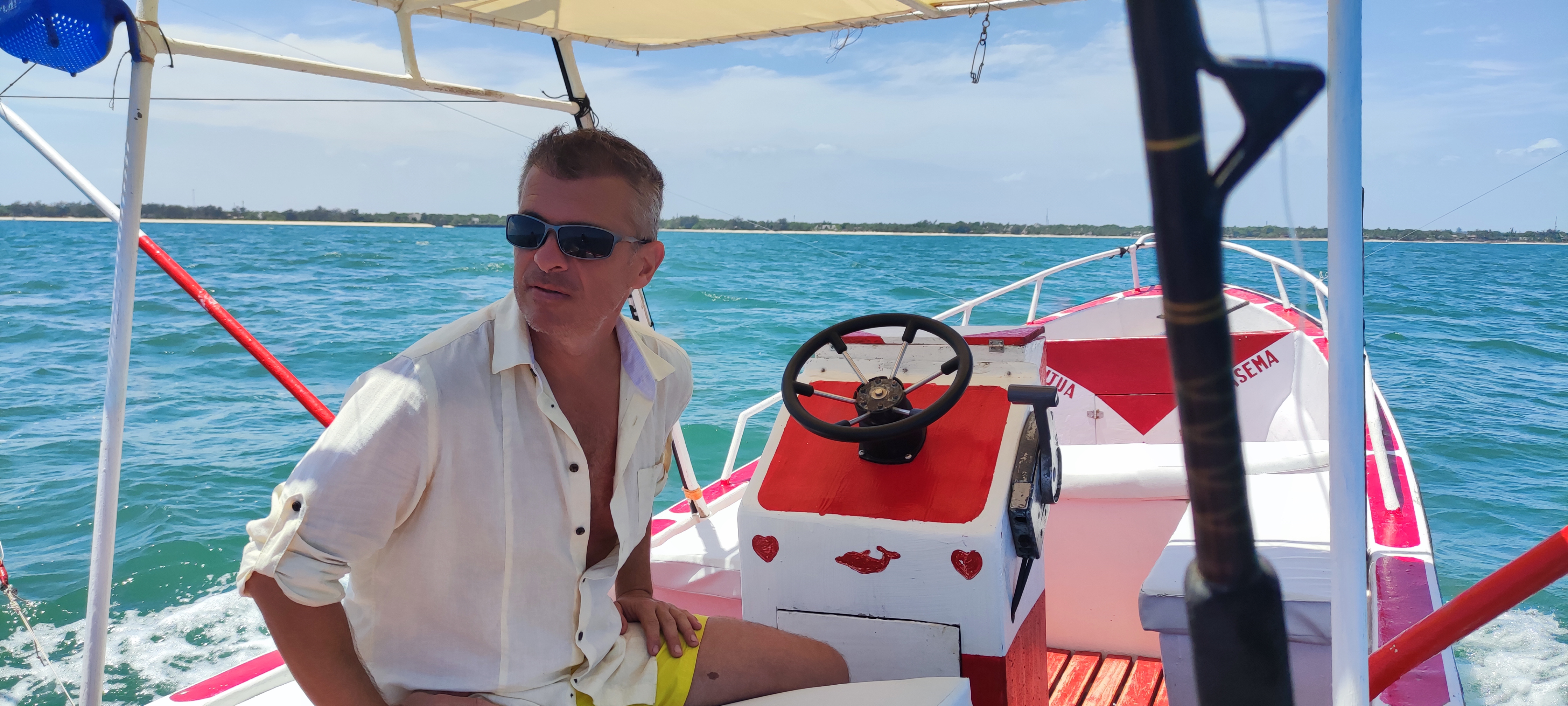 Iată-mă deci luat de amicul Collins la 6h30 dimineața din resort, după un răsărit de soare la Ocenul Indian ratat, fiind nori exact la orizont (încercasem să optimizez ora foarte devreme a trezirii și să bifez și răsăritul) și debarcat 30 de minute mai târziu din tuk-tuk în brațele proprietarului barci, Ali, care mi-l prezintă pe Capitanul Ali și pe fiul lui (un puști de cam 16 ani pe care, din fericire pentru moment, nu-l chema Ali).