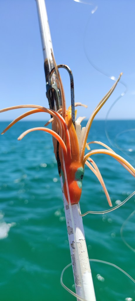 Căpitanul a sărit pe undița, a mulinat, l-a slabit, a mulinat din nou, iar l-a slabit și după încă unul două cicluri l-a adus lângă barcă…Era el….”monstrul” …la cam 70cm și cam 10-12 kg. O barracuda, altfel frumosă, dar care s-a încăpățânat să nu vrea pe grărtar și să aleagă libertatea dându-i cu flit căpitanului Ali exact când să fie trasă în barcă.