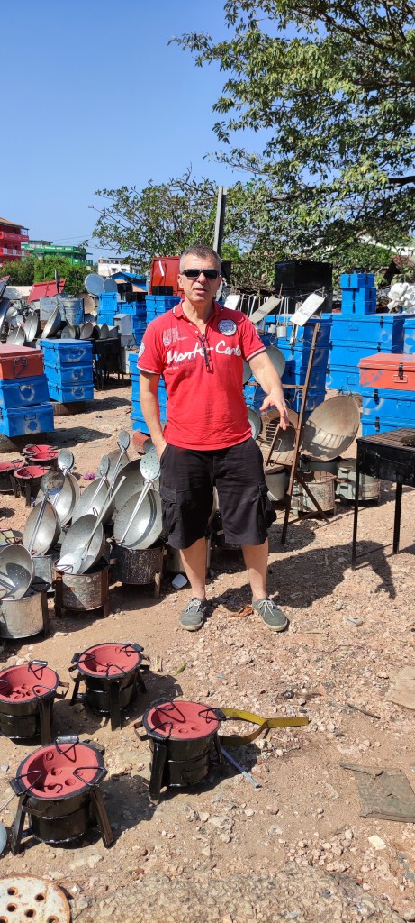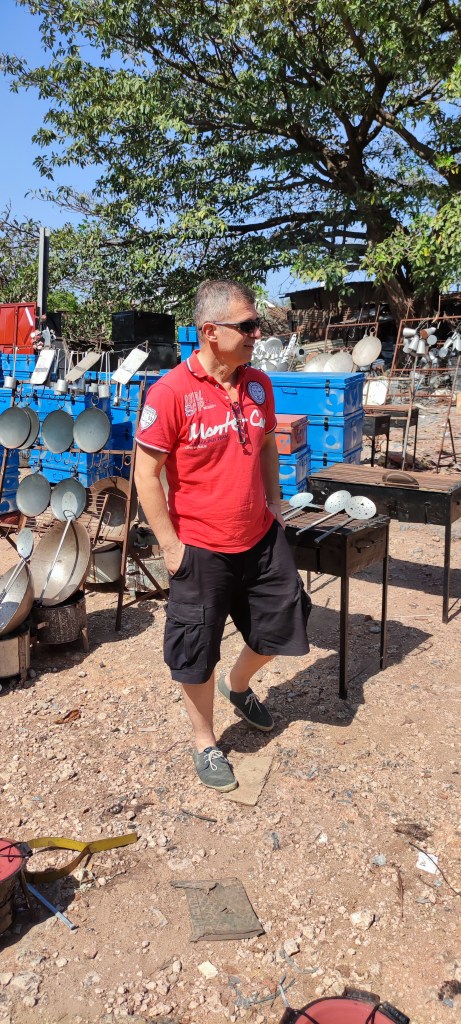 Cu toate cumpărăturile făcute, lipsea ceva și m-am prins foarte repede ce: grătar-ul. Așa că l-am rugat pe Collins să mergem să facem rost de un gratar, lucru care a fost aproape o formalitate: am mers la ceea ce în România am descrie ”târgul căldărarilor”. Oamenii făceau acolo orice din metal, gratarul pe care l-am ales, cel mai mic din gamă, avand însă nevoie de finisaje. Cam cum are nevoie un fotoliu aflat în pachet la Ikea, atunci când e luat de pe raft. Baiatul de colo m-a asigurat că în 5 minute pune ce mai trebuie pe el și 5 minute au și fost …kenyene. Practic dupa 40 de minute am plecat de acolo mulțumit de deal, luând împreună cu grăratul și o ”mașină de gatit pe cărbuni”, totul cu numai 120 de lei (o să folosesc leii în toate comparațiile, fiind mai simplu).  Și ca adevărat profesionist în ale grătarului am trecut și prin benzinărie de unde am luat ”paraffine”, lichidul cu care kenyenii aprind gratarul (un lichid cu temperatura de flamabilitate mare, astfel încât e safe pentru lucruri din astea)
