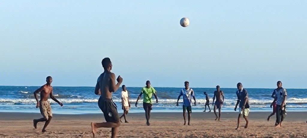 Și că tot am vorbit de ocean, bine, nu în cea mai glorioasă ipostază pentru mine, trebuie să spun că plaja din nord, pe lângă care stau, este probabil una din promenadele favorite ale localnicilor din Malindi. Plajă lată, în special datorită mareei care intră mult în interiorul țărmului și bătătorește nisipul de-ar putea și un avion să aterizeze pe el (chiar?!), e folosită nu numai ca promenade dar și ca pistă de motociclete, teren de fotbal și… spre invidia cocalarului roman, șosea pentru mașini de teren bengoase! Fără însă niciun risc de împotmolire sau, mai ales, de amendă. Iată încă un motiv pentru suporterii ROExit pentru a scapa de tirania regulilor draconice ale Bruxelles-ului și a ajuta România să facă încă un pas către apropierea de nivelul de trai al Kenyei.