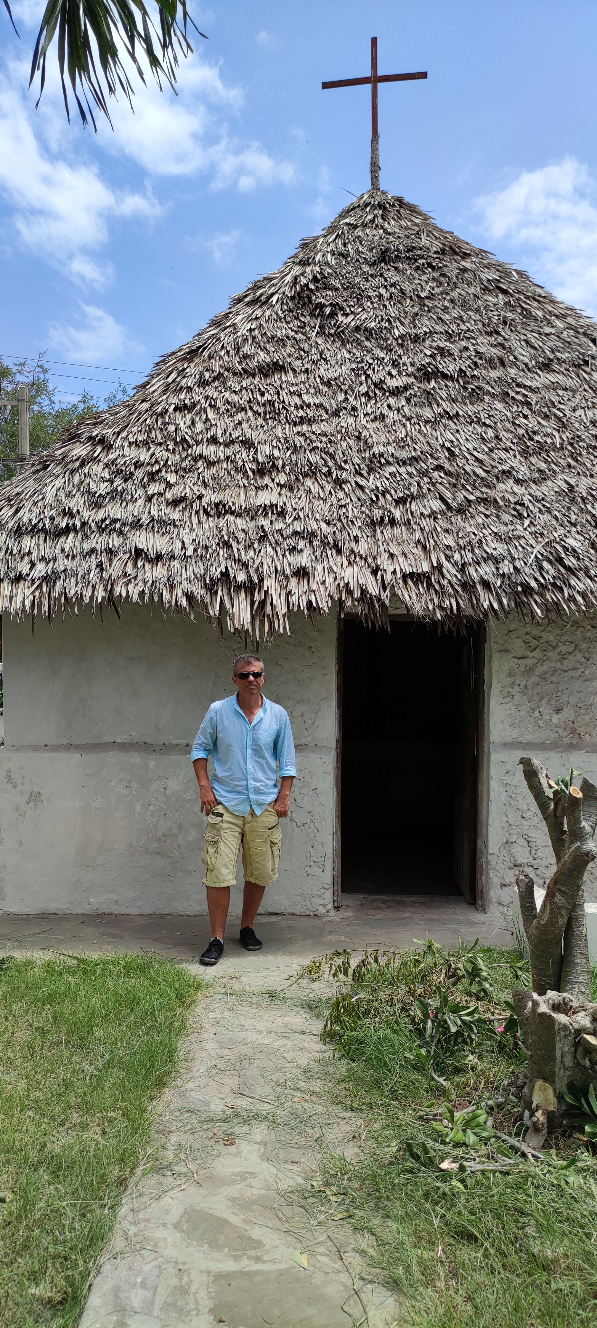 Și ca să râmanem la teme religioase în Malindi există și prima biserică creștină din Africa de Est, construită tot de portughezi, pe la 1500 și ceva. Practic originale mai sunt doar zidurile întrucât acoperișul, din lemne și frunze, e refăcut în fiecare an. Nu se face slujbă în mod curent, dar cel care avea grijă de loc m-a învitat să mă rog, dacă vreau, și numai după ce s-a asigurat că sunt creștin 😊. În curte sunt și câteva morminte ale englezilor, ”British people” cum îî numesc kenyenii și azi, de pe la mijlocul anilor ‘50, când țara era încă în perioada colonială. Un mormânt mi-a atras atenția, ”Major JJ. Drough… Soldier, Pioneer, Farmer 1875 – 1956”. Good old British Empire and its subjects!!!
