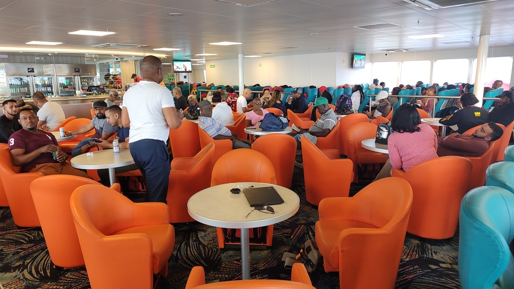 Pe bac fiind, după o scanare foarte atentă a împrejurimilor (atât la îmbarcare cât și la debarcare) am realizat că eram singurul alb, a.k.a. ”caucasian”, de pe vapor. Dealtfel culoarea mi-a adus și un beneficiu direct, fiind singur la masa de 4 locuri din secțiunea ferry-ului în care m-a așezat, deși situația probabil nu era un compliment la adresa mea ci din contră. Dacă ”Black life matters” probabil că în ochii localnicilor ”White life sucks” (și câteodată chiar nu pot să îi condamn), evitând astfel să se asocieze cu un exponent al grupului.