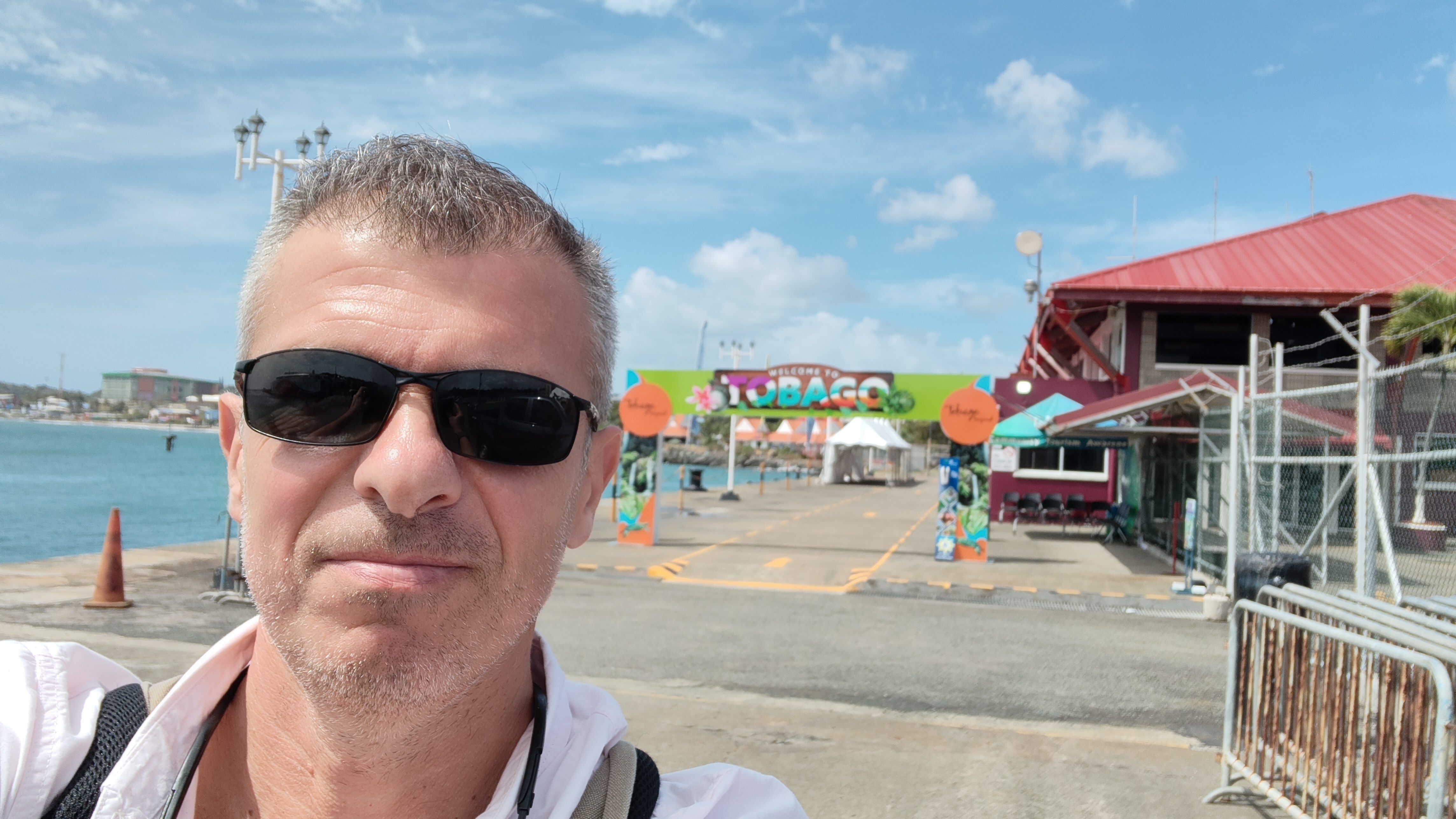 Dupa cca 3h, în Tobago, trebuia să îl întâlnesc pe taximetristul meu, Michael, utilizator de WhatsApp și destul de religios din moment ce atunci când am aranjat întalnirea în Scarborough (portul și capitala Tobago-ului) omul mi-a răspuns cu un evlavios ” God pleasing when you arrived i be there sir” (am păstrat forma mesajului original). Deja ridicat fiind la rang de unicat pe vapor, nu mi-am închipuit o secundă că ar fi vreo problemă ca Michael să mă întâlnească, pe lângă culoarea pielii, geanta mea roșie cu buline albe părând un fel de geamandură în marea Caraibelor.
