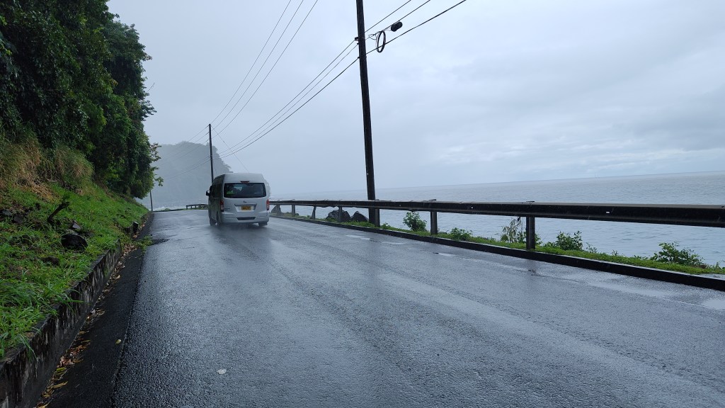Este o adevărată încântare să mergi la cei 35-45km/h pe scuter (ai vrea mai mult dar nu poți), când te plouă și cănd tricoul încetează să mai fluture pe tine fiind prea greu de apă. În plus pe lângă gropile sau dâmburile pe care trebuie să le gestionezi, ai și bălțile, moment în care perspectiva se schimbă. Astfel din ”a ajunge repede”, te multumești cu ”a ajunge”, în încercarea înțeleaptă de a evita ”a rămâne înțepenit aici”. Unde ”aici” era un drum de coastă, plin de gropi, pe care ploua și care era cam ”in the middle of nowhere”, deși sunt conștient că expresia este totuși un compliment pentru localnici, pentru o insula așa de mică.