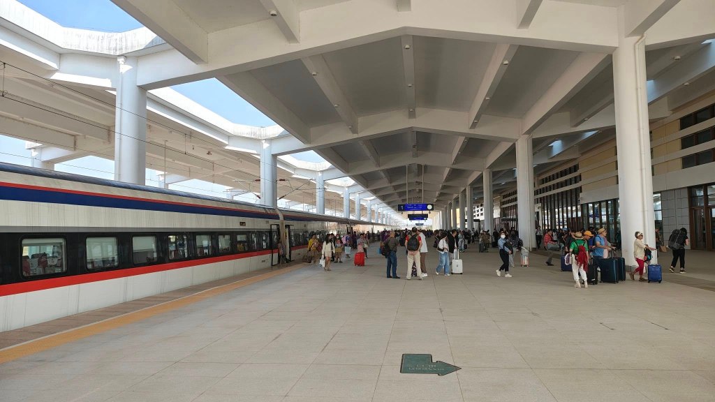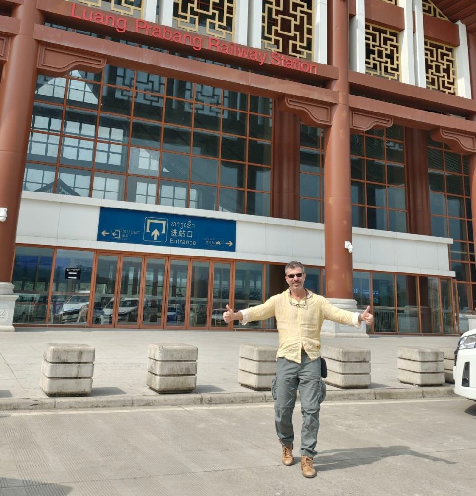 În 2021 s-a dat în funcțiune linia de 475 km de cale ferată (pe ecartament european, 1435 mm) de la granița cu China în Vientiane. Pentru numai 5 miliadre de euro, un drum de 170km, din Luang Prabang în Vientiane, care se facea înainte în 12h cu mașina și 20h cu autobuzul, acum se face în 2 ore. ”Smooth as a baby butt”. Din primele 45 de minute pe traseu am mers 40 de minute prin tuneluri, întrerupte numai din când în când între 3 secunde și 30 de secunde de o priveliște muntoasă, între două tuneluri. Practic, mergeam cu metroul.