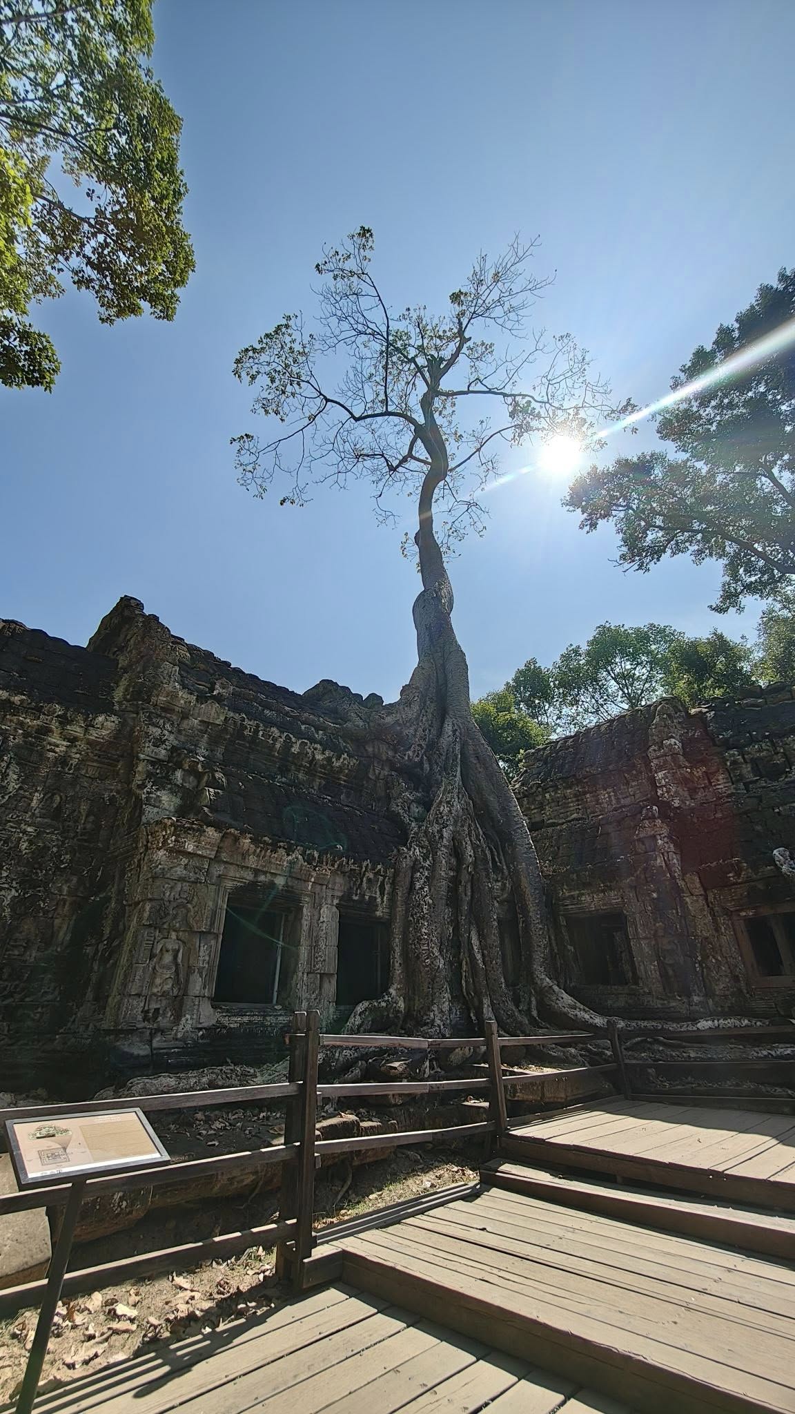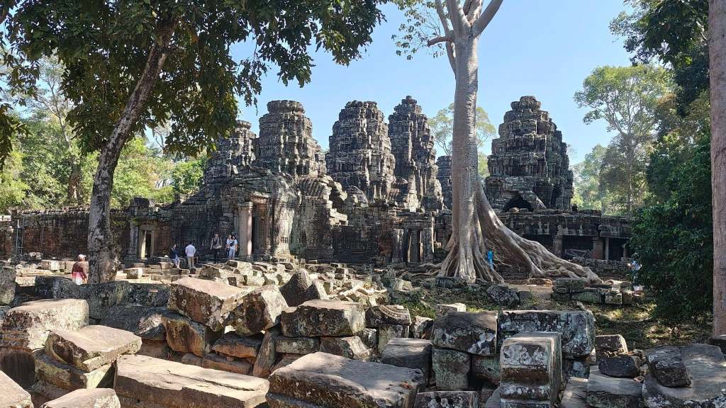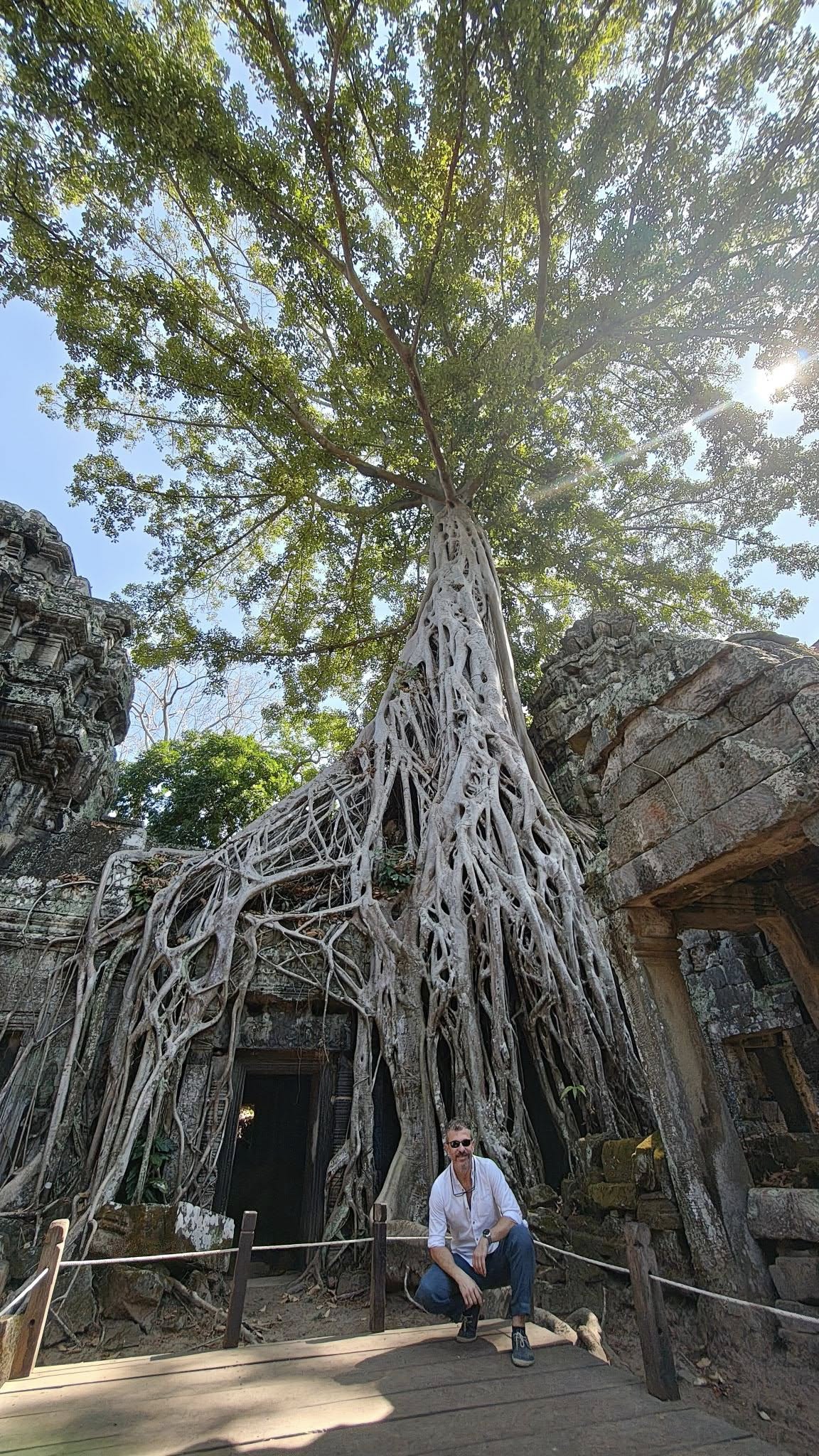 Sar peste descrierea templelor (no spoiler needed!), menționând că pe lângă Angkor Wat mai sunt încă 3 de vizitat, toate spectaculoase și cu un aer de ”Indiana Jones” mai acut decât al filmului în sine. Construite pe la anul 1100-1200, se pare cu o armată de oameni (70000) și de elefanți (3000), pe la 1500 și ceva au fost abandonate, capitala mutându-se unde e și astăzi, la Phnom Penh. Asta în principal datorită atacurilor Siam-ului (Thailanda de azi) care, se pare, a fost un jupân prin zonă multe sute de ani (cam ca Imperiul Otoman în Europa orientală). Asta a făcut ca templele să stea uitate 350 de ani în jungla, fiind redescoperite (sigur nu în forma de astăzi care a cerut și multă muncă de reconstrucție) abia pe la 1860. Asta a presupus integrarea vegetației junglei cu templul, existând și acum câțiva copaci de peste 300 de ani care ”îmbrățișează” templele și a căror îndepărtare ar pune în pericol siguranța clădirilor.