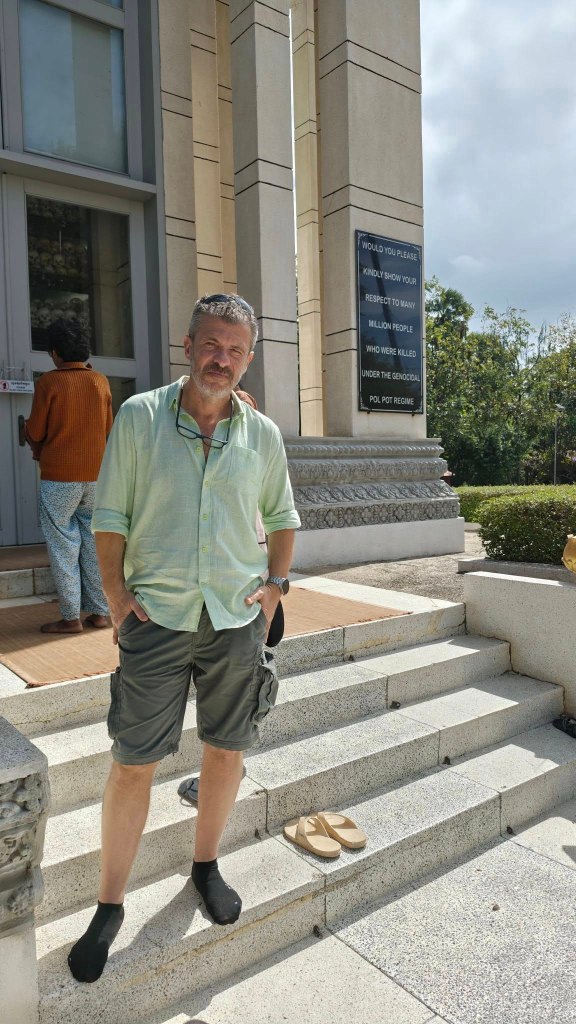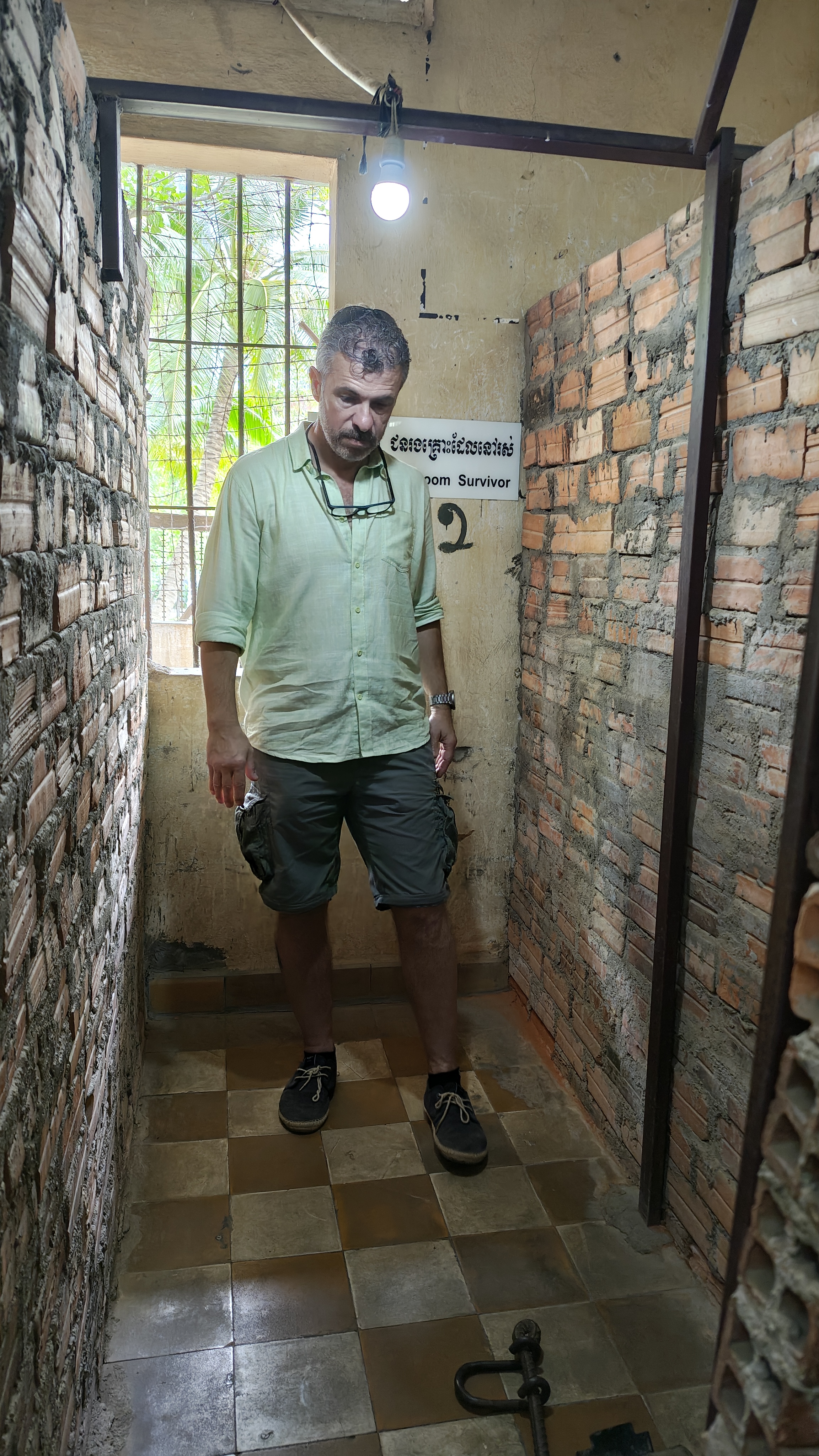 Al doilea loc vizitat a fost în Phnom Penh – muzeul genocidului. În fapt o școala cu 4 corpuri de clădire, parter plus etaj, pe care khmerii le-au transformat în închisoare, locuri de interogatorii și tortură, urmate în final de execuția dușmanilor poporului, Doar 7 oameni au supraviețuit, pe unul având sa-l întâlnesc în ”Killing fields” unde am ținut să cumpăr cartea în care își descrie calvarul și să mă bucur că am putut face o poză cu el. Iar bucuria se referea la el, nu la mine. În mod incredibil, a supraviețuit calvarului și a putut să își spună povestea. Expresia ”live another day to tell the story” s-a materializat astfel în fața ochilor mei, într-o poză de ianuarie la 50 de ani de la calvarul lui!