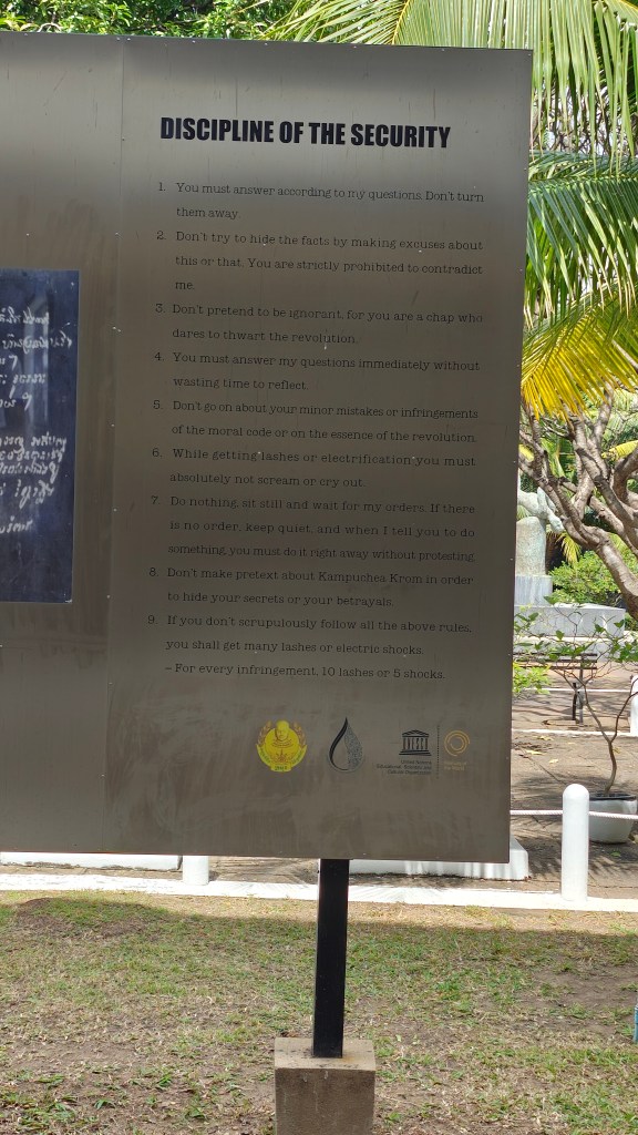 Primul, cam la 15 km în sud vestul Phnom Penh-ului, lagărul S21, ”the killing field”-ul Phnom Penh-ului și unul dintre cele 348 de astfel de zone identificate după război de guvern. Ca să evităm orice dubii ”killing field” se traduce ca și ”câmp de exterminare” și nu de ”omoruri”. N-o să intru în amănuntele istorice (Google it – dacă sunteți interesați) dar o să fac câteva mențiuni despre ce am văzut la fața locului.